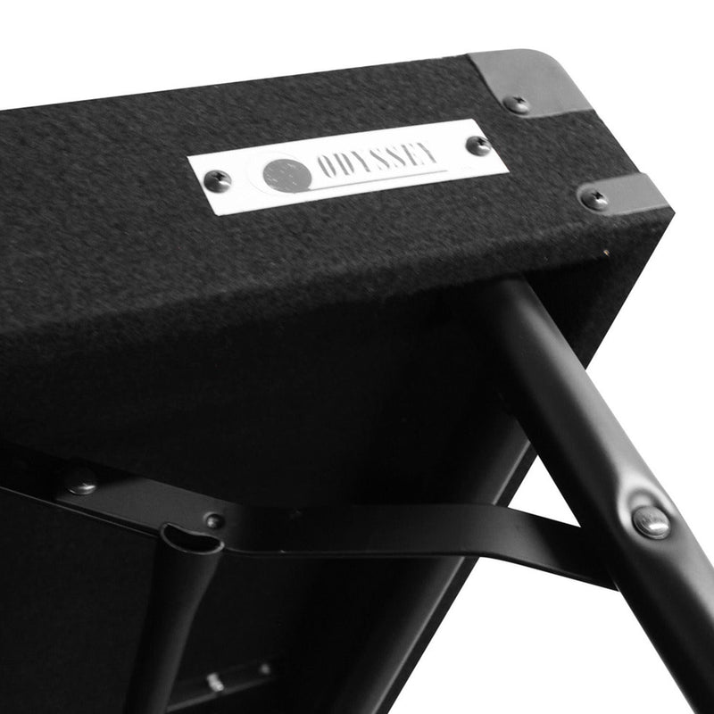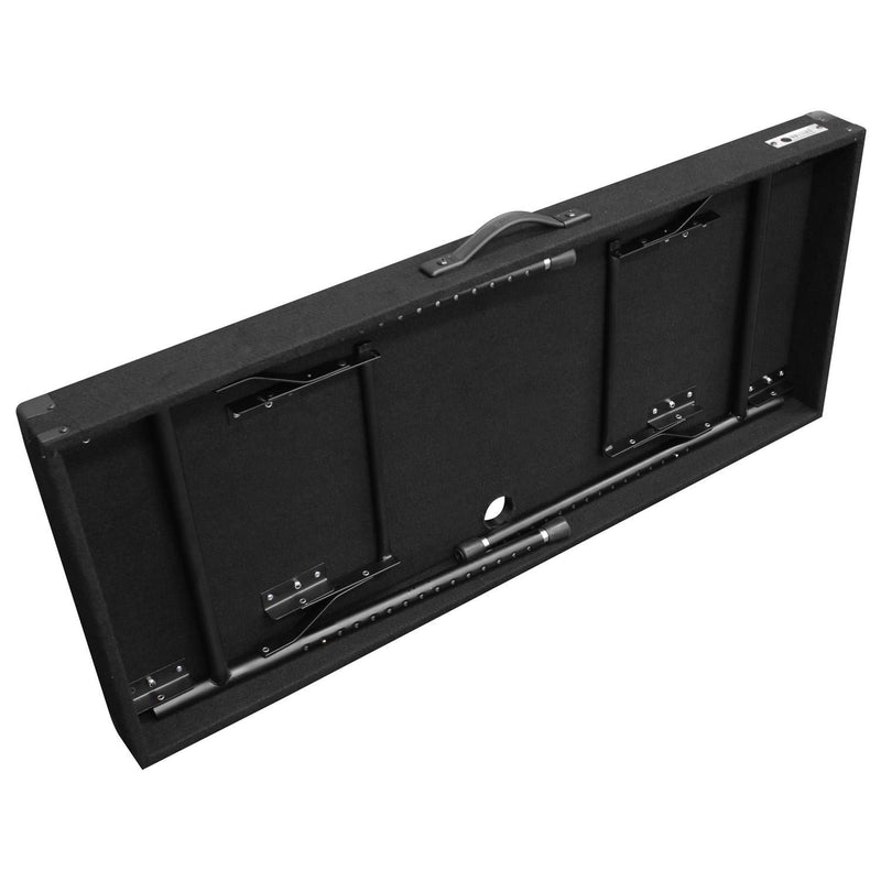 This Odyssey DJ table measures 48 inches wide and 20 inches deep and comes with a PRE-TAPPED port hole for cable runs and a strap handle for easy carrying. The folding leg system is height-adjustable from 26 to 38 inches. The CTBC2048 can hold 150 lbs. Use this clean carpeted design work surface to set up your system or music.