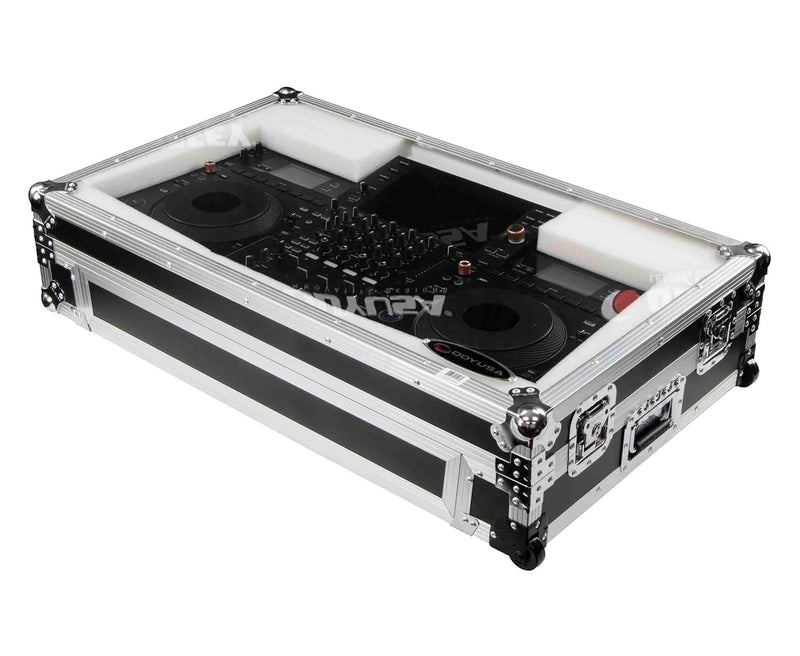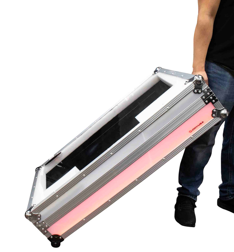 The Odyssey SCOPUSQUADCW1, Flight Effects Show Case for Pioneer DJ OPUS-QUAD with Wheels. OPUS-QUAD, microphone, microphone receiver, laptop, and laptop arm are not included.