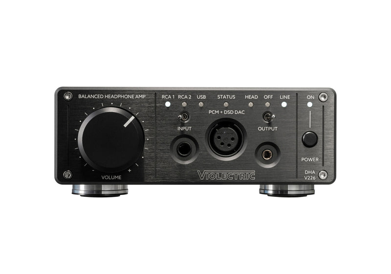 The Violectric DHA-V226 Headphone Amplifier, Preamp and DAC is a high-quality compact solution for demanding hi-fi tasks. The high-resolution converter unit accepts digital audio with up to 32 bit at 384 kHz and DSD 256 via USB-C. The converted signal is then output by a headphone amplifier in top Violectric quality to balanced or unbalanced headphones via 4-pin XLR, 4.4 mm Pentaconn or 6.3 mm jack. The innovative circuit enables the operation of a wide variety of headphone types, from high-impedance models to low-impedance versions and magnetostats. Lowest noise and minimal distortion allow an exceptionally clear, detailed reproduction. Two analog RCA inputs and an analog RCA output integrate the DHA V226 effortlessly into a hi-fi setup and make it the central hub.