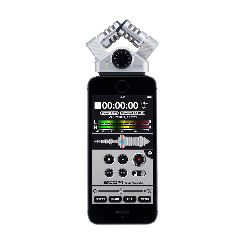 Turn your iOS device into a field recorder by plugging in a Zoom iQ6 stereo X/Y microphone. With the same microphone elements as the renowned H4n, the iQ6 allows you to capture the sound of concerts, interviews, meetings and lectures with precision and full fidelity. Together with the Handy Recorder app, you can edit, enhance, and share your creations with the world.