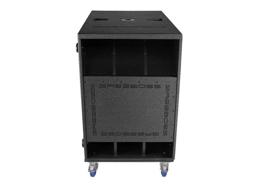 The BASSBOSS VS21-H-WC is a heavy-duty horizontal transport cart designed specifically for the VS21-MK3 Subwoofer. With interlocking recesses and locking casters, it allows secure stacking and rapid deployment in pro audio environments.