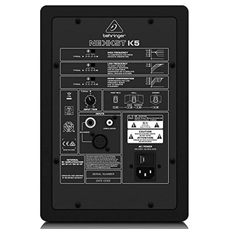 The 150-Watt NEKKST K5 Studio Monitor's unparalleled, world-class performance is the result of a major collaboration between BEHRINGER audio engineers and loudspeaker master-designer/founder of KRK – Keith R. Klawitter. This incredible reference system is ideal for all critical listening environments thanks to the custom-engineered bi-amplification system that features separate amplifiers for the 5" glass-fiber woofer and 1" silk-dome tweeter. K5's long-throw woofer generates deep, tight bass and virtually smear-proof mids, while the ultra-high resolution tweeter provides sparkling highs – all enhanced by Keith's Advanced Waveguide Technology for an extremely generous sweet spot.