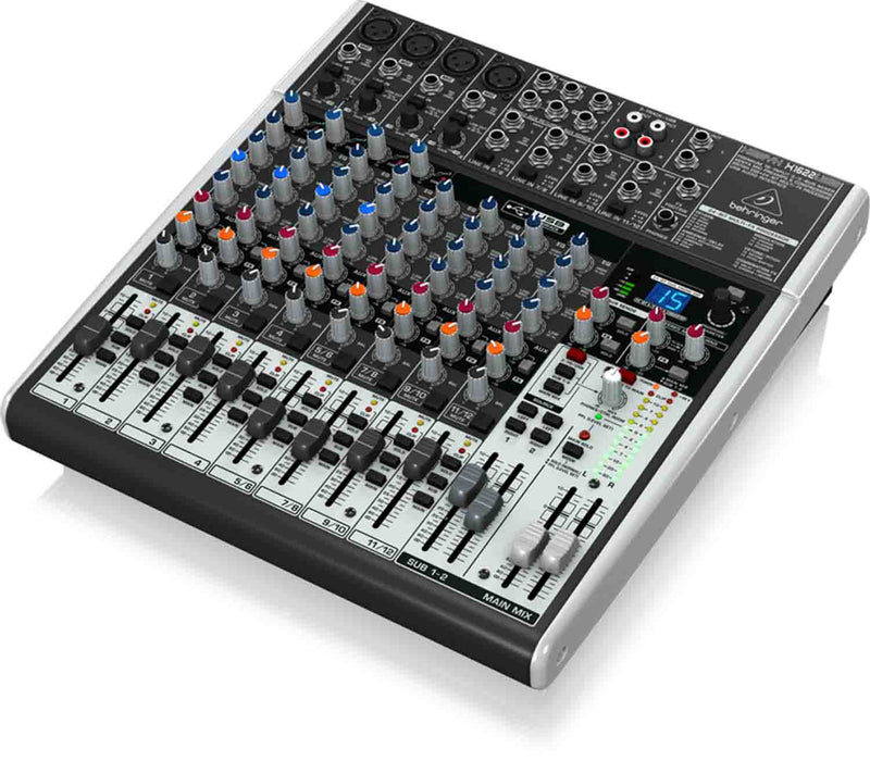 The compact XENYX X1622USB mixer allows you to effortlessly achieve premium-quality sound, thanks to 4 onboard studio-grade XENYX Mic Preamps, super-easy one-knob studio-grade compressors and our ultra-musical British channel EQs with a semi-parametric mid band for the maximum flexibility in sound sculpting. Add to this our 24-bit, dual-engine Multi-FX processor with 16 editable, professional-grade presets including reverb, chorus, flanger, delay, pitch shifter and multi-effects and the X1622USB becomes an incredibly versatile mixer for your live performances. But the XENYX X1622USB wasn’t just designed to handle your live gigs; it also provides the state-of-the-art tools you need to make stunning, professional-quality recordings. Along with their built-in USB audio interface, the XENYX X1622USB comes with all the recording and editing software needed to turn your computer system into a complete, high-performance home recording studio.