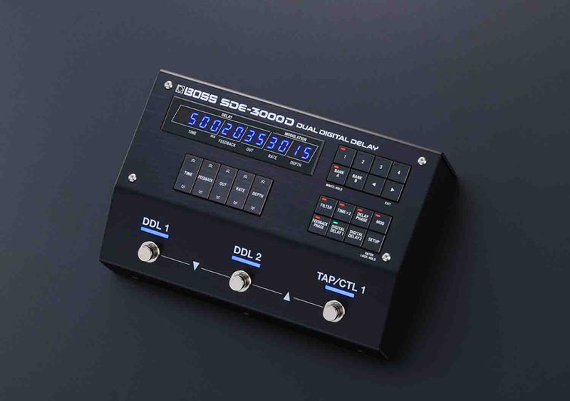 The Boss SDE-3000D Dual Digital Delay Effect Pedal. The Roland SDE-3000 is a hallowed icon among fans of classic gear. With its highly musical character, long delay times, and ability to store and recall presets, this rackmount legend went on to become the prime delay machine for the world’s finest touring guitarists, session musicians, and engineers of the time, and its special sound is still revered forty years later.