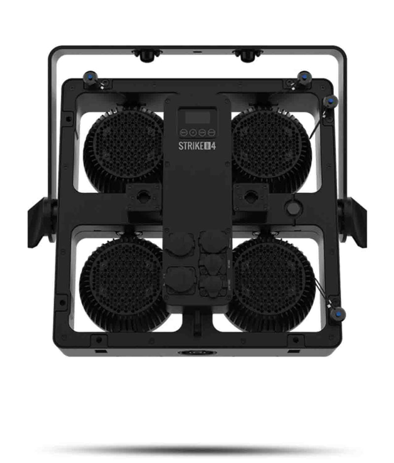 The Chauvet Pro STRIKE Array 4 Outdoor-Ready Audience Blinder is an electrifying outdoor-ready audience blinder with four high-power warm white LEDs housed in independently focusable pods. An emulated “amber shift” warms the color temperature of the light as it dims to deliver a classic tungsten look. Its variable PWM and high CRI make it ideal for broadcast applications. Thanks to a custom interlocking system CHAUVET Professional has developed, STRIKE Array 4 can be interconnected with multiple Array units for scalable design configurations without any tools. Omega-Bracket locks are also installed both on the yoke and the back of the IP65 blinder – giving you a streamlined truss mounting process.