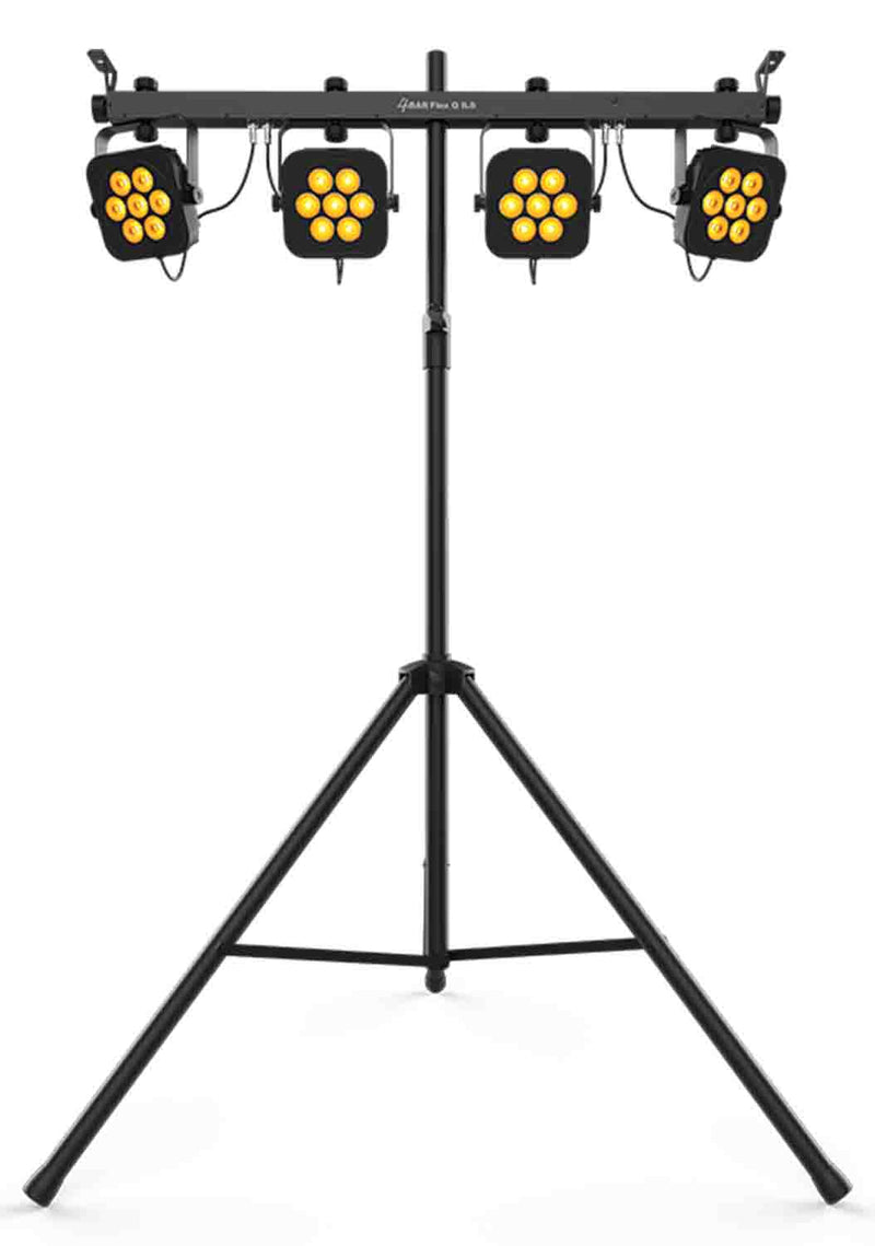 The Chauvet DJ 4Bar Flex Q ILS Quad Color RGBA LEDs Wash Lighting System. This all-in-one system is fitted with four par fixtures on one bar. Because 4BAR Flex Q ILS is compatible with the Integrated Lighting System (ILS) that makes creating coordinated light shows across an unlimited number of different fixture types easy and fast, generating synced light shows without DMX is even easier. High-intensity, quad-color (RGBA) LEDs generate a broad spectrum of colors and achieve natural-looking color temperatures with its punchy amber LEDs. 4BAR Flex Q ILS easily sets up and tears down in minutes and includes a handy carry bag.
