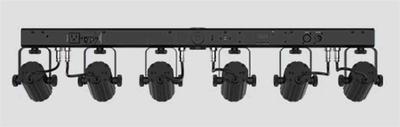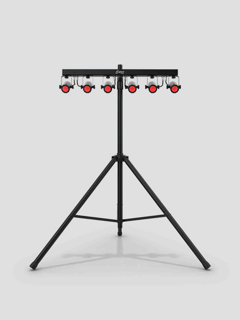 Complete spot and effect lighting solution fitted with high-intensity quad-color (RGBW) LEDs. Adding eye-popping spot and effect lighting to any stage or dance floor is easy and convenient with 6Spot RGBW, a complete Pack-N-Go lighting solution fitted with high-intensity quad-color (RGBW) LEDs. Achieve total room or stage coverage with 6 individually adjustable heads all on one bar for easiest setup and teardown. A convenient carrying bag is included. 6Spot RGBW mounts to most tripods or speaker stands, without the need for additional clamps, using the pass-through hole, but L-brackets are included for multiple mounting options including for floor or truss mounting. Wireless control is possible when using the optional IRC-6 remote control. Other convenient control options include built-in automated programs and sound-activated programs that dance to the beat of the music.