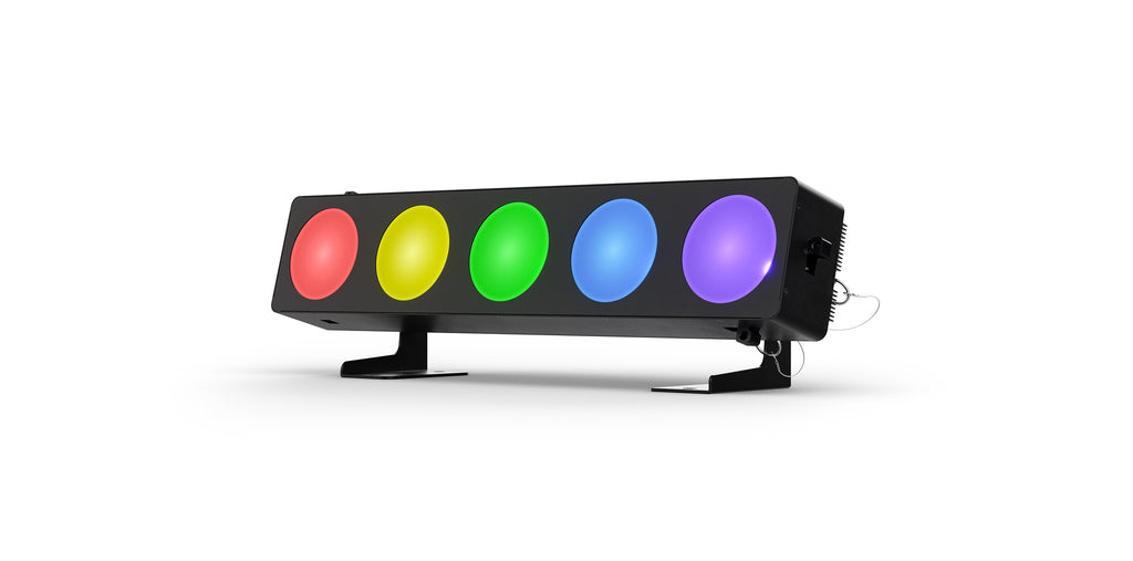 The Chauvet Core 5x1 ILS is a versatile multi-purpose LED effect light that functions as a pixel-mapping effect, chase light, blinder, or wash. Powered by five high-output COB LEDs (quad-color RGB+WW, 35W each), it delivers a wide spectrum of vibrant colors along with natural-looking white color temperatures. With a beam angle of 54°, a field angle of 75°, and output of up to 2,875 lumens, it provides strong, even illumination suitable for stages, events, and installations.