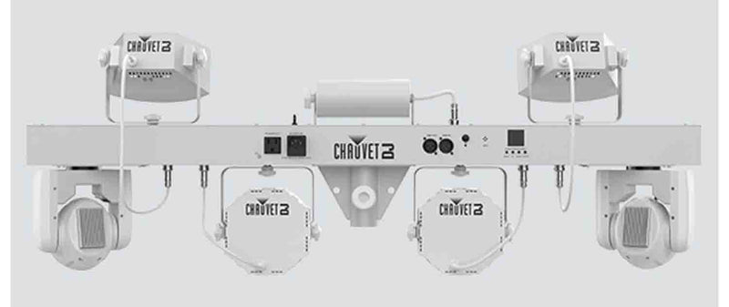 The Chauvet DJ GIGBAR MOVE is a 5-in-1 Lighting System With Pre-Mounted On a Single Bar- White versatility and power is packed into GigBAR Move, a 5-in-1 lighting system that includes moving heads, derbies, washes, a laser and strobe effect pre-mounted on a single bar. That means a complete light show is available from this single system that includes a tripod, wireless footswitch and FREE carry bags to ensure quick setup. The moving heads have separate color and gobo wheels to enhance creative programming possibilities, plus built-in Totem Mode to keep the moving heads focused on the dance floor. Individual control of each effect ensures your show looks the way you need it to and events can be energized with dynamic effects like built-in UV LEDs to illuminate florescent objects and make them pop. Controlling GigBAR Move is also easy. Stand-alone control, DMX, wireless IRC-6 remote or wireless footswitch options are all on board. GigBAR Move is also compatible with GigBAR 2 in master/slave mode for huge coverage and dynamic light shows.