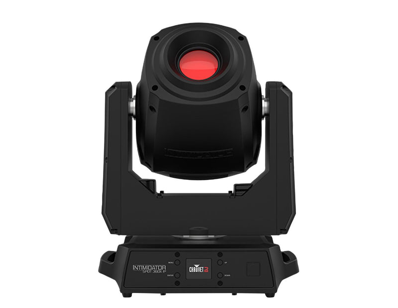 The CHAUVET DJ Intimidator Spot 360X is a LED Moving-Head Light Fixture (Black). Lighting designers in need of a feature-packed moving head will be impressed with the CHAUVET DJ Intimidator Spot 360, a moving-head LED light fixture with a bright output that's designed to energize dance floors in clubs, bars, event spaces, and more. The color wheel offers eight colors plus white and split colors, while the gobo wheel offers seven different patterns plus an open position. The fixture uses a 100W white LED, has a variable 12 to 17° beam angle with manual zoom to throw light farther. The 570° maximum pan range and 270° maximum tilt range are ideal for mobile applications. The fixture allows for both standalone and DMX operation with sound-active and automatic modes. Use the master/slave configuration to coordinate multiple fixtures without the need for a controller. The fixture ships with a hanging bracket and mounting hardware.