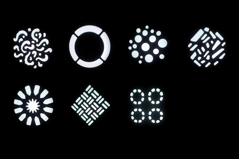 Rotating Gobo Wheel: 6 gobos plus open and gobo shake