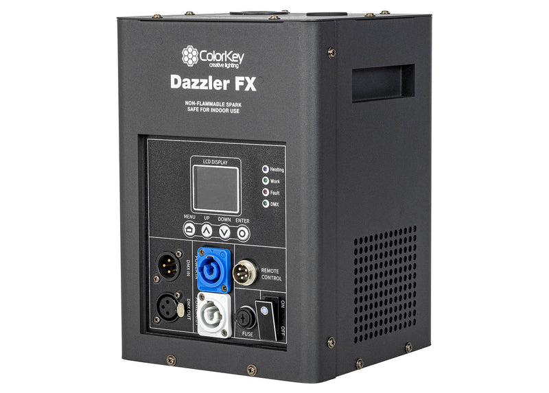The ColorKey Dazzler FX is a safe and impressive cold-spark fountain system. Set your events apart with a dazzling geyser of shimmering sparks that can reach up to 15ft and pre-heat in as little as 3 minutes.