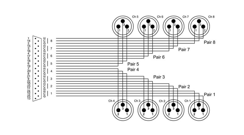 The Cordial CFD DMT is a Multicore Cable with Analog Tascam DSUB. Our CCD DMT is a high-grade multicore cable for professional studio and LIVE applications. Its pin configuration conforms with the analog Tascam DSUB 25 specification (DA 88) and features 25-pin D-Sub male to 8x 3-pin XLR male nickel-plated metal connectors. The corresponding bulk cable is CORDIAL’s CMD 8, which transmits analog as well as DMX signals excellently and features a tinned braided shield and spiral wound tinned copper pair screens.