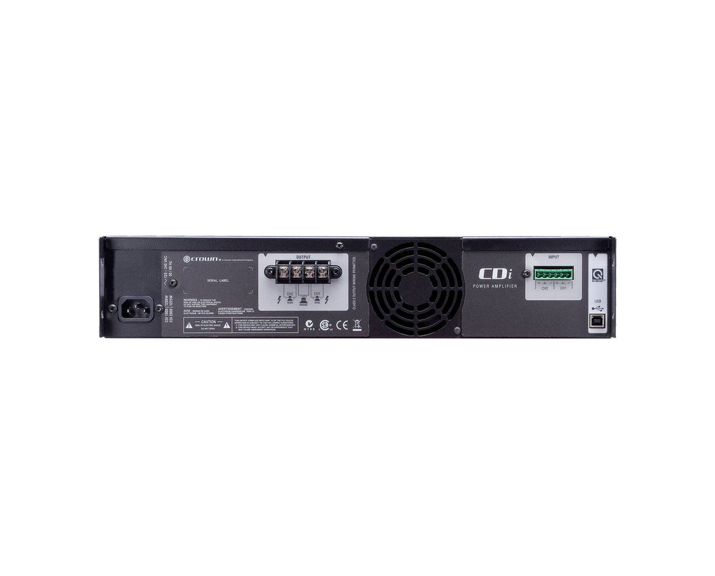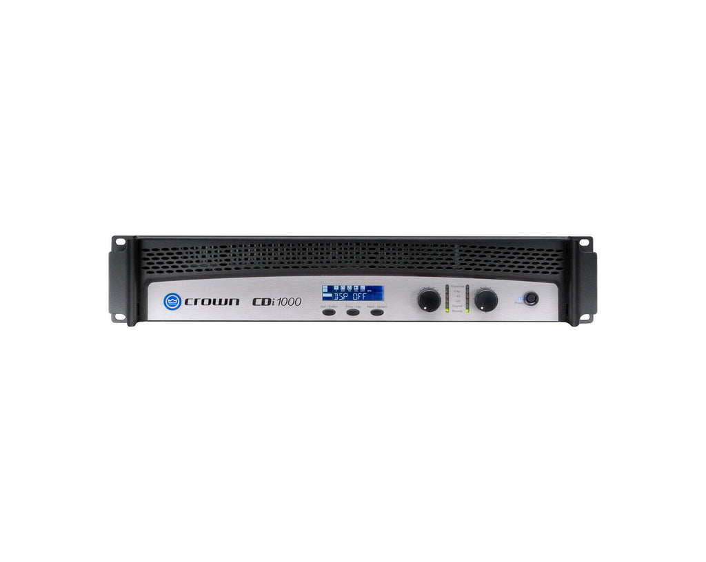 The Crown CDi 1000 Two Channel Commercial Amplifier is a rugged, lightweight commercial power amplifier designed for dual-channel or bridge-mono operation in installed audio applications such as restaurants, retail stores, warehouses, offices, and more. The CDi 1000 provides accurate, uncolored sound with low distortion for excellent music and vocal reproduction. It delivers 500W per channel at 4 Ohms, and supports multiple low-impedance configurations, as well as 70V and 140V constant-voltage systems. The switch-mode universal power supply enables safe operation across the globe.