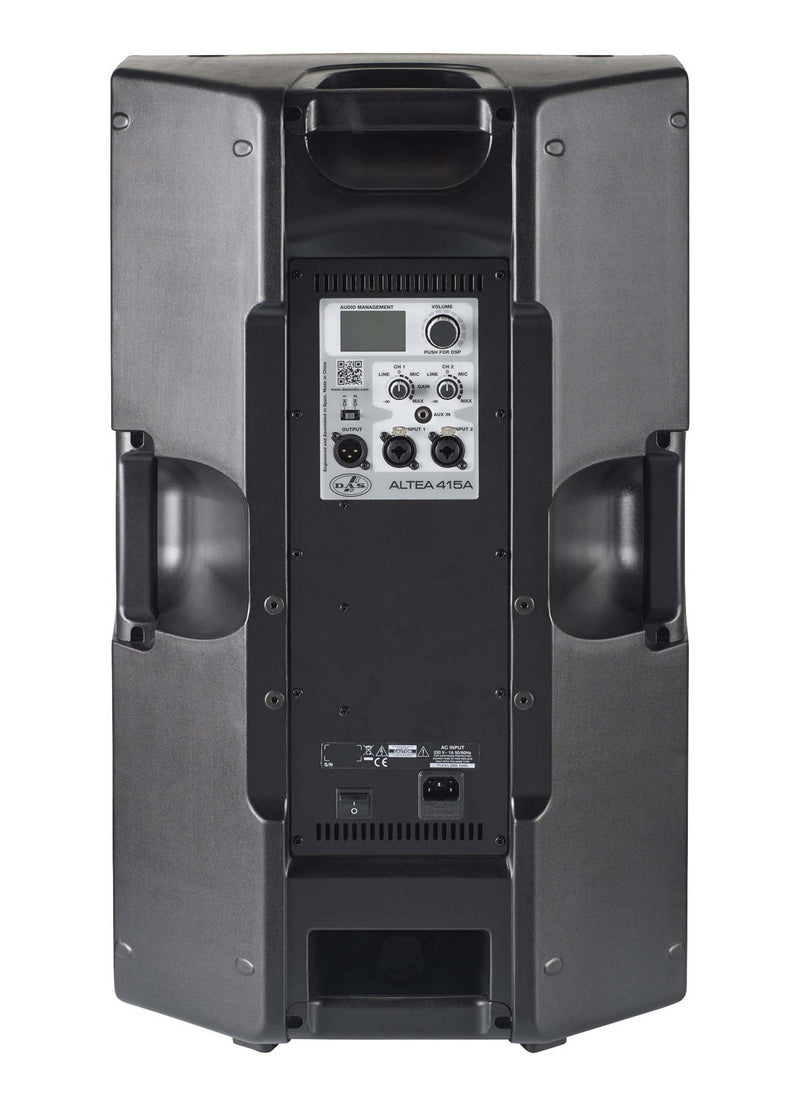 The ALTEA-415A is a powered portable P.A. system with a multi-angle polypropylene enclosure that allows for use as a stage monitor. Onboard is a Class D two-channel amplifier of exceptional quality providing a total of 800 W peak power. of the provides extended bandwidth, wide dynamic range and exceptionally low distortion-features hard to find on other systems in this market segment.