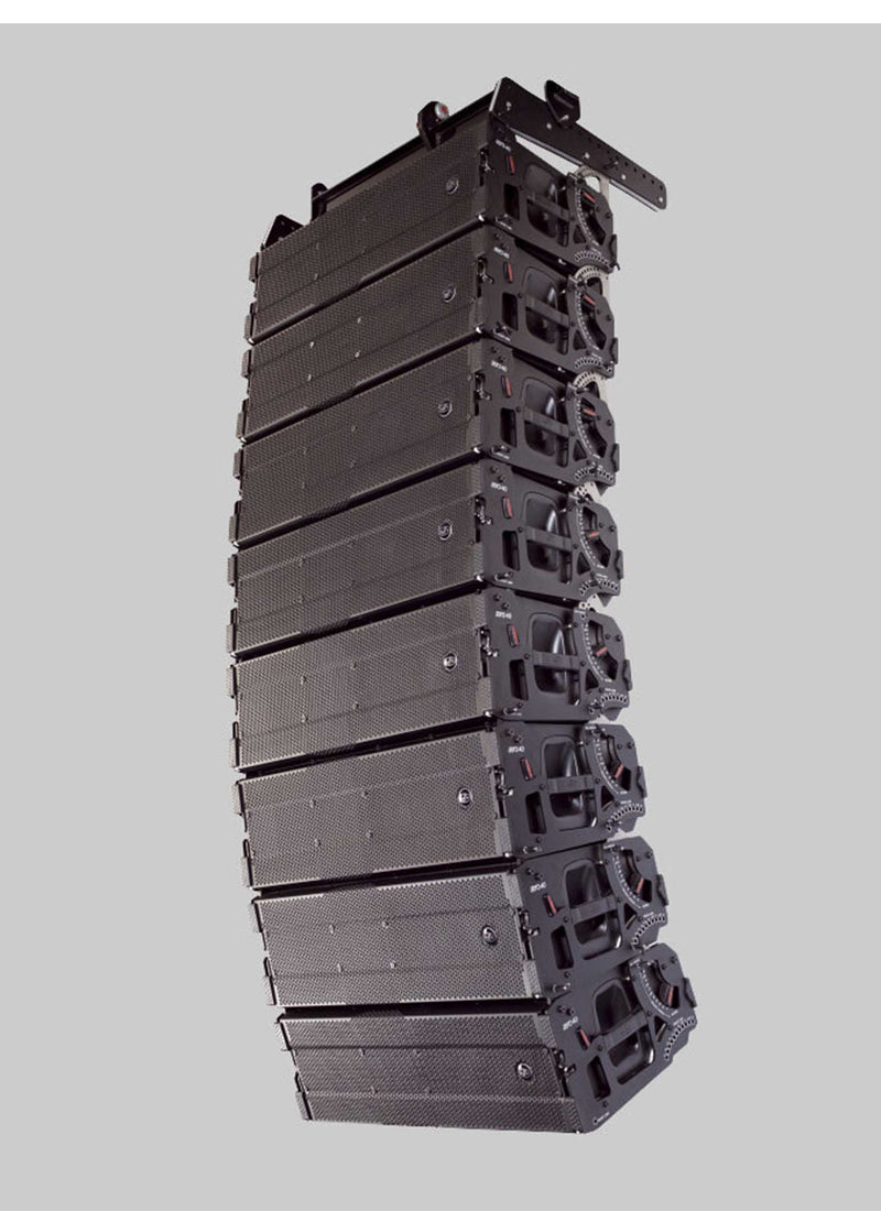 The AERO-40A is a 3-way powered line array system which incorporates connectivity for remote monitoring and control. The unique configuration of the AERO-40A Advanced Line Array System (ALAS) incorporates a rear-loaded 12” transducer in a bass-horn configuration for low-end reproduction. The mid-range is handled by a new 8” transducer developed specifically for the AERO-40A. High frequency reproduction relies on two DAS M-75N compression drivers attached to a new BPS-2912 waveguide.