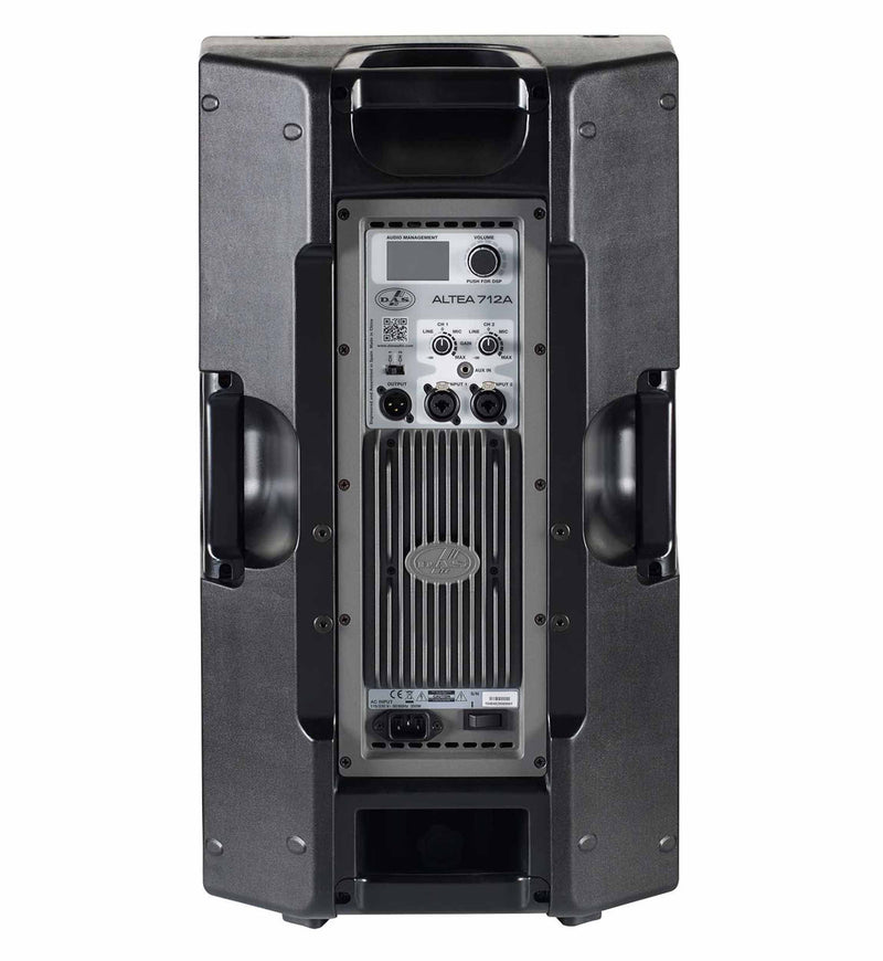 The ALTEA-712A is a high-powered model from DAS Audio ALTEA Series. It is equipped with a 1500W peak Class D two-channel amplifier that provides extended bandwidth, wide dynamic range and exceptionally low distortion. Digital Finite Impulse Response (FIR) filters are used in the signal processing of the ALTEA 712A system.