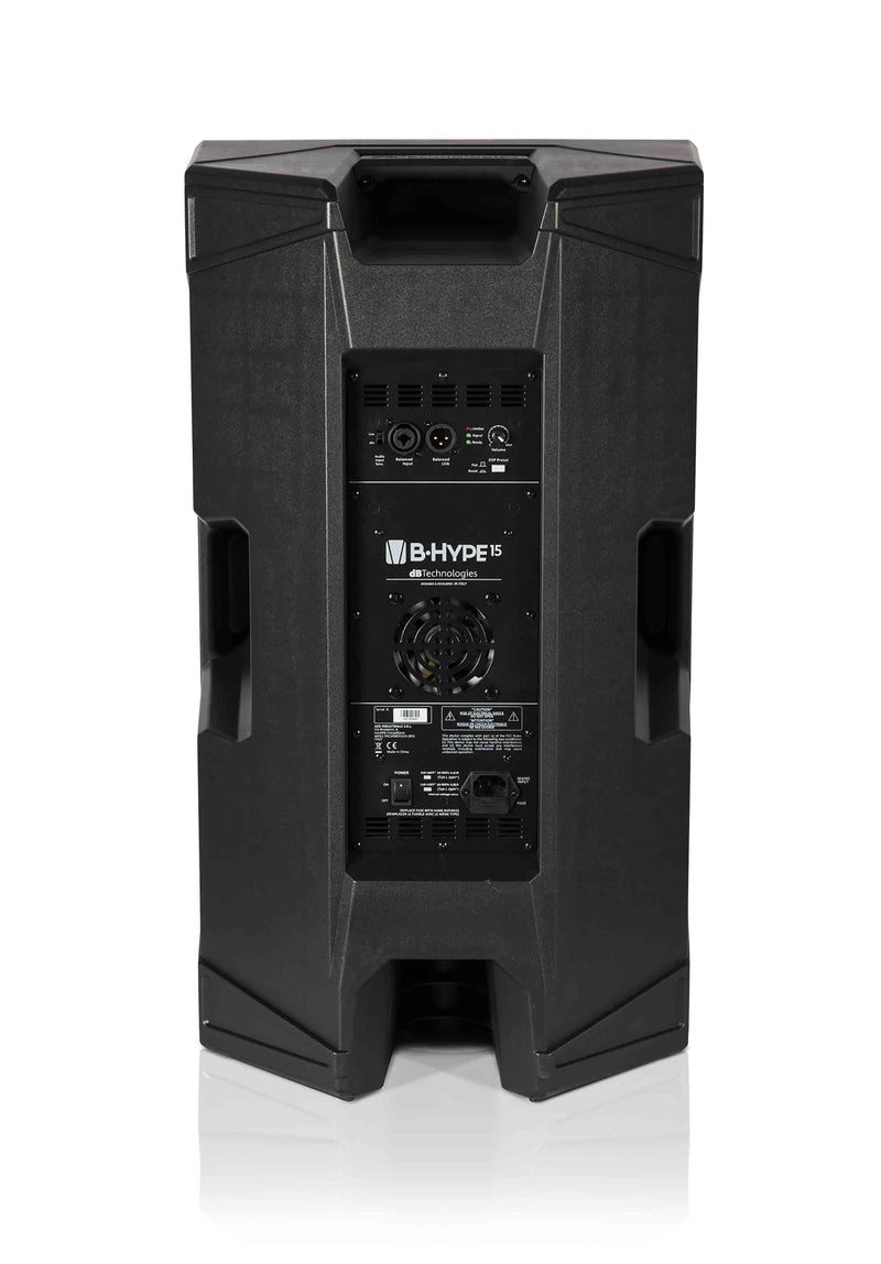The dB Technologies B·Hype series aims to provide a professional yet efficient sonic performance to all kind of users, combining an extremely efficient CLASS D amplifier with aggressive sound pressure levels (up to 126,5 dB for the 15” cabinet), while delivering the most accurate sound reproduction. The new B·Hype 15 is a versatile active speaker. It is equipped with one 1” neodymium compression driver (1” voice coil), and one 15” woofer (2” voice coil). The dispersion pattern is asymmetrical on vertical axis, and it is diversified (top and bottom) on the horizontal one. This allows a narrower and more efficient sound coverage, and a better performance in case of reverberant environments. The combo input (with source type selection) allows an easy and versatile use, suitable for a dynamic microphone and standard line input. The user can enhance lower and upper frequencies with the convenient DSP preset function. A balanced link output allows the audio connection to a second loudspeaker. The featherweight cabinets (from 14 to 38 lbs) come with a clean and contemporary full grille design, enhancing both portability (3 handles -1xside and 1 on top-) and multifuncionality: each cabinet can be used horizontally as a stage monitor (on both sides) and features a pole mount cup in order to be used on tripods or stacked on dBTechnologies Subs.