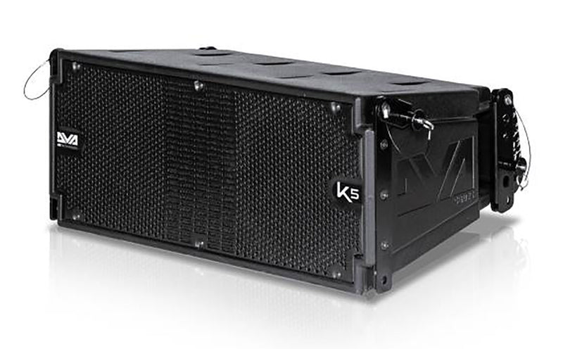 The dB Technologies active line array series DVAK5 has set new standards in the sound reinforcement industry since its market launch in 2006. Equipped with top-notch features and engineered for maximum versatility, DVA series brought the benefits of line array technology to a much wider range of users. Now dB Technologies upgrades the best of technology that determined the success of the whole series in the new 3 way active line array module DVA K5. Featuring a Class D 500 W RMS Digipro G3 digital amplifier, DVA K5 is capable to reach up to 129 dB SPL and aims to inherit the success of the earliest model of the series DVA T4, thanks to technological upgrades partially derived from the most recent model of the series DVA T8. The new DVA line array module comprises 2 1,4” drivers, a 6” neodymium midrange and a 8” neodymium woofer.
