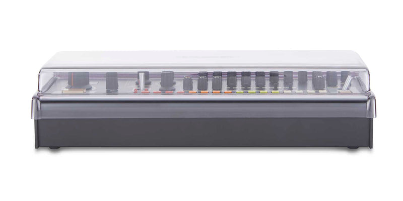 The Decksaver Roland Boutique Cover fits Roland Boutique TB-03, TR-09, TR-08, JU-06, JP-08, JX-03, D-05, and SH-01A. The tools we use to compose and produce music are dear to our hearts. The studio elements of dust, smoke, and liquid have taken many a good groovebox down over the years. This is where Decksaver steps in. Precision trimmed for a perfect fit while accommodating cables, your groovebox can sit ready for operation. Slides straight into a flight or soft case for maximum protection during transportation. Shields delicate controls and internal components from damage at home, on the road and on stage. This cover is not compatible with the VP-03 as it obstructs the XLR microphone input.
