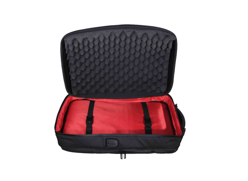 The DGS DJ BAG HARD BackPack for Pioneer/Alpha Theta OMNIS DUO, DDJ-FLX4, DDJ REV1, DDJ 400 XP1, WeGO4-K and DENON PRIME GO is designed backpack for DJs, musicians, producers and for comfortable use for every day, at work and on travel. Backpack shockproof for two-channel controllers. The DJ BAG Hard BackPack is a shock-resistant backpack for popular 2-channel DJ controllers and mixing consoles up to 19.68in (50cm) wide, up to 11.81in (30cm) deep and up to 3.15in (8cm) height. The special feature of the DJ BAG Hard BackPack is that it embodies all the advantages of a shock-resistant case, the convenience of a backpack with soft straps, a separate pocket for a laptop up to 16 inches, with a compartment for a tablet and mesh pockets for wires and other necessary accessories.