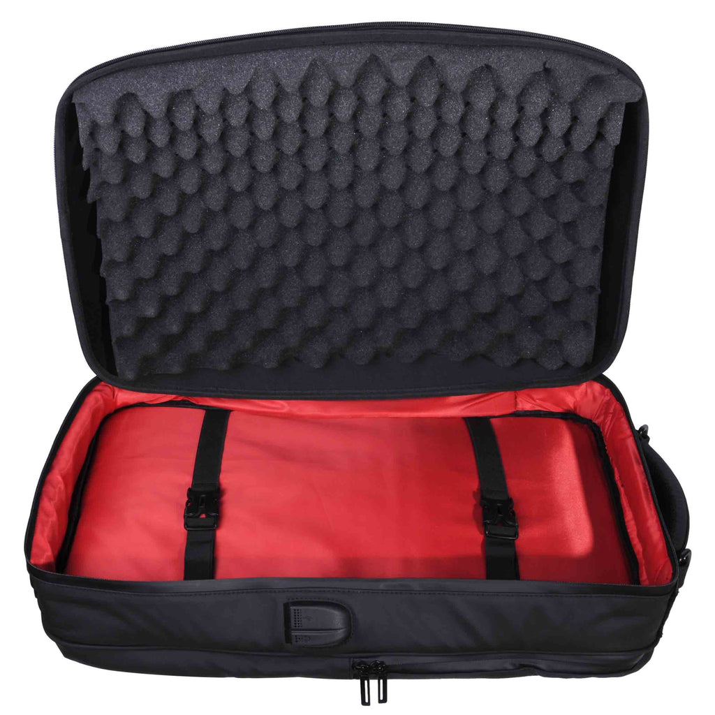 The DGS DJ BAG HARD BackPack for Pioneer/Alpha Theta OMNIS DUO, DDJ-FLX4, DDJ REV1, DDJ 400 XP1, WeGO4-K and DENON PRIME GO is designed backpack for DJs, musicians, producers and for comfortable use for every day, at work and on travel. Backpack shockproof for two-channel controllers. The DJ BAG Hard BackPack is a shock-resistant backpack for popular 2-channel DJ controllers and mixing consoles up to 19.68in (50cm) wide, up to 11.81in (30cm) deep and up to 3.15in (8cm) height. The special feature of the DJ BAG Hard BackPack is that it embodies all the advantages of a shock-resistant case, the convenience of a backpack with soft straps, a separate pocket for a laptop up to 16 inches, with a compartment for a tablet and mesh pockets for wires and other necessary accessories.