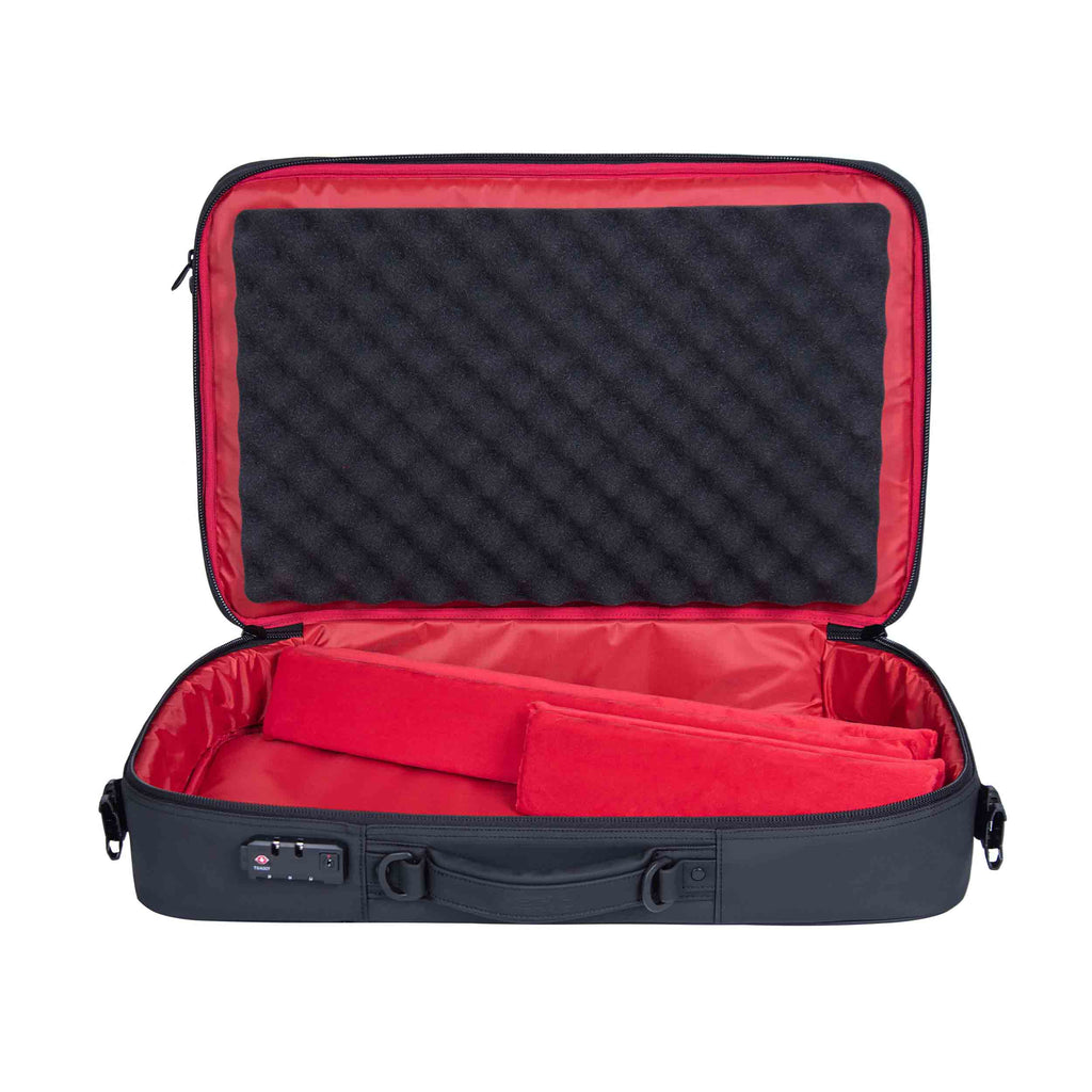 The controller bag allows you to take with you the most necessary equipment for full and comfortable work. The main compartment has a high-density perforated foam, which protects the jogs, faders and buttons of equipment of various sizes. In the walls of the bag, 1.5mm thick plastic and 10 mm EVA foam are used in a circle, which will reliably protect your equipment from external influences. For internal fixation of the equipment, there are 4 dense inserts with a thickness of 20mm and covered with Crystal Velvet. The large front pocket of the bag has a laptop compartment up to 17 inches and a convenient key clasp. The main compartment of the bag has a TSA lock.