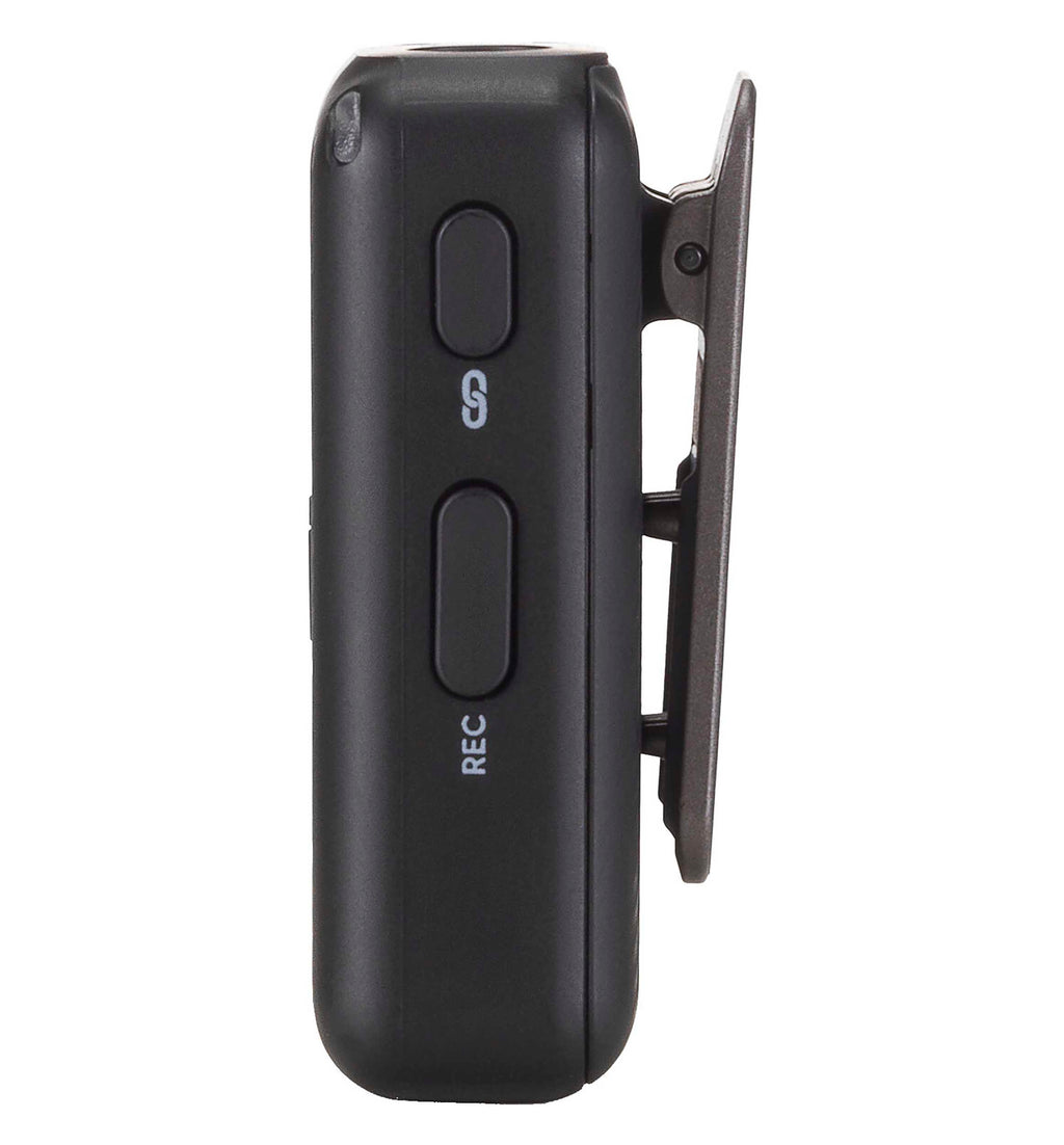 The miniature transmitter is comfortable to wear, easy to position, and easy to conceal on camera.