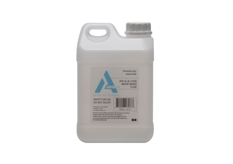 The Elation APS-2L Premium Dry-On-Impact Snow Fluid - 2 Liters is a professional-grade, dry-on-impact snow fluid designed to produce realistic snow effects for both indoor and outdoor events. Formulated specifically for the Magmatic Polar series snow machines, it is also compatible with most other water-based snow machines. This water-based fluid is pH balanced, colorless, odorless, non-toxic, and non-irritating, ensuring safety and comfort for performers and audiences alike. Ready for immediate use without the need for dilution, the APS-2L delivers high-volume snow effects that dissipate quickly upon contact, leaving minimal residue and reducing cleanup time.