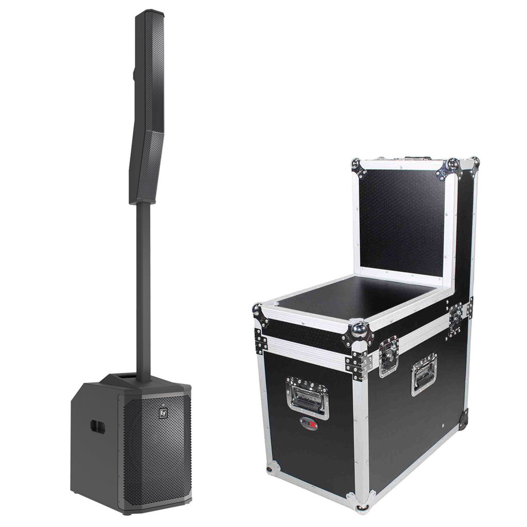 This Speaker package includes the Electro-Voice EVOLVE50M-SB-US Portable Linear Column Array PA System with onboard mixer, DSP, effects, and QuickSmart Link technology for professional sound in a sleek, portable design; the Electro-Voice EVOLVE 50 Portable PA Column Array, featuring eight 3.5" neodymium drivers powered by the subwoofer’s 1000W amplifier with easy magnetic pole connection and internal cabling; and the ProX X-EV-EVOLVE50X1W Flight Case, designed specifically for the EV Evolve 50 Compact Array System, built from 3/8" laminated plywood with a hard shell, internal impact-resistant padding, and two low-profile wheels to ensure maximum protection and easy transport.