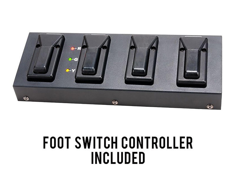 Engineered for reliability and portability, the Dotz TPar Sys Plus is constructed with top-quality materials, boasting 50,000-hour rated LEDs, ensuring durability and flicker-free performance. It’s easy to set-up, operator and take down. This portable lighting system includes four adjustable COB LED Par Wash fixtures, a foot controller, lighting stand, RF remote control, stand bag, and a soft case for the entire system.