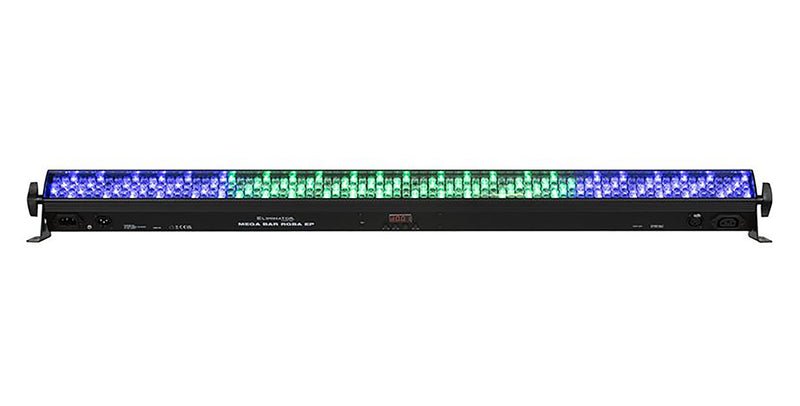 The Eliminator Mega Bar RGBA EP is a compact, 42” linear bar fixture that offers the flexibility of RGBA (red, green, blue, and amber) color mixing for your club, bar, or mobile DJ setup. The fixture has a total of 320 LEDs, with 64 red, 96 green, 96 blue, and 64 amber diodes. The fixture can be used in stand alone mode or connected in a primary/secondary configuration.