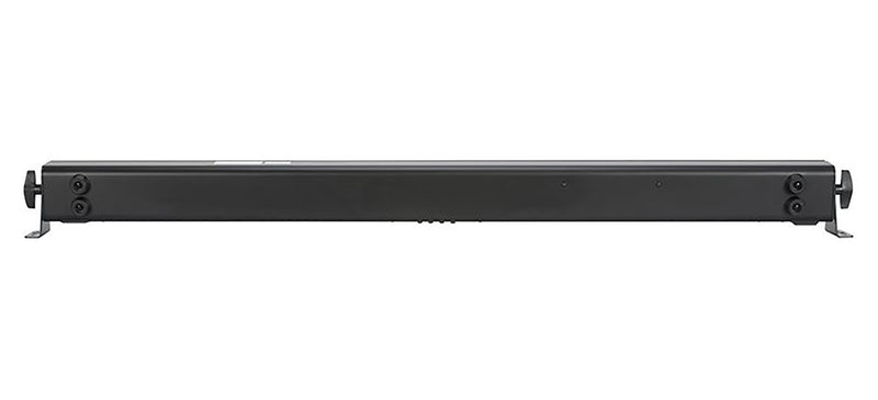 There are six operating modes, including Sound Active mode, Auto mode, RGB mode, Static Color mode, and DMX control mode (4, 6, 7, 9, 10, 18, and 34 channels). Use the 48 built-in color macros for quick and easy programming. The enclosure includes mounting brackets which double as a floor stand. The rear panel includes the LCD menu, 3-pin DMX, and power I/O for connecting up to 20 units, while magnetic end caps ensure the precise alignment of multiple bars. The Mega Bar RGBA EP is compatible with the ADJ RFC wireless remote control (sold separately). A power cord is included.