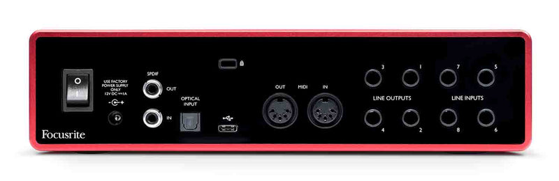 The Focusrite SCARLETT-18I8-3G 18x8 USB Audio/MIDI Interface lets artists and content creators score pro-level tone with no learning curve. Equally capable for tracking vocals and instruments, the four improved Scarlett microphone preamps feature switchable phantom power for condenser mics, pads to prevent distortion on loud input signals, and a selectable-per-channel Air circuit, which adds clarity-enhancing brightness based on Focusrite's legendary ISA preamplifier.