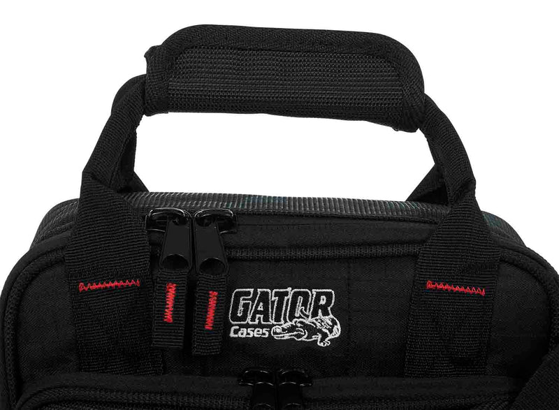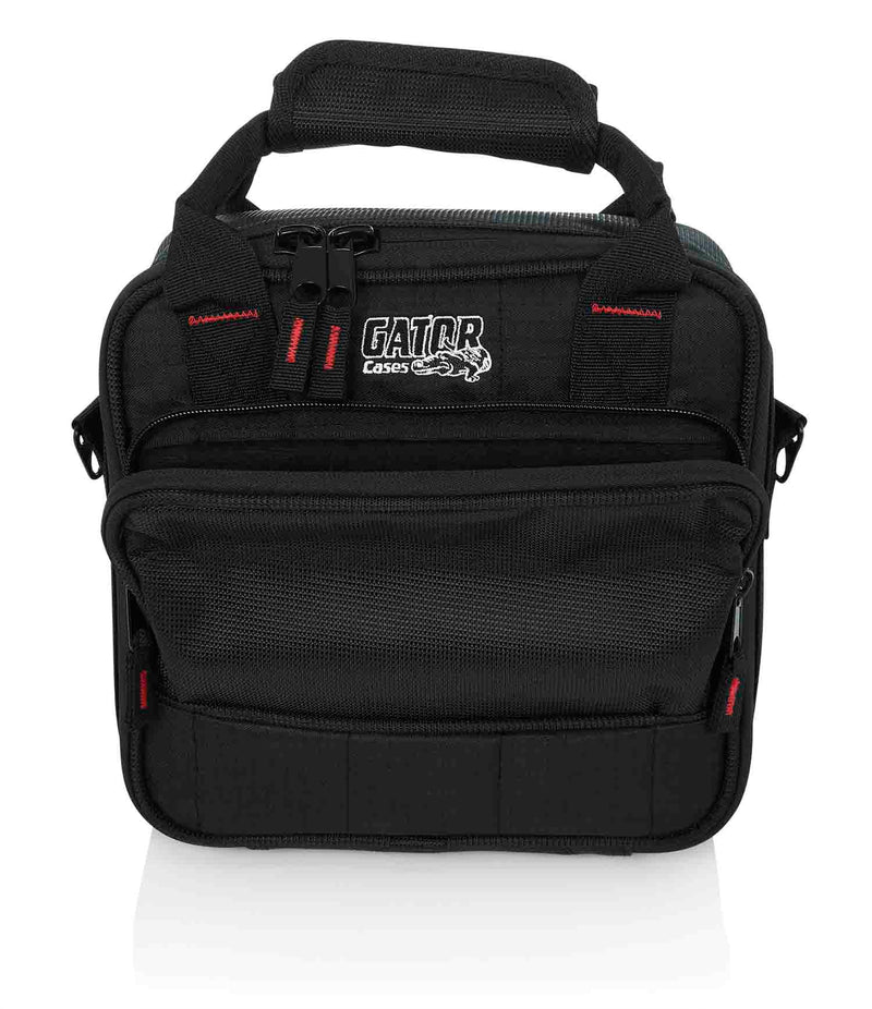 The Gator Cases G-MIXERBAG-0909 Rugged Nylon has Exterior 10mm Dual Layer Padded Protection Protective Tricot lined interior Removable shoulder strap & comfortable webbed handles External storage pockets with cord management.