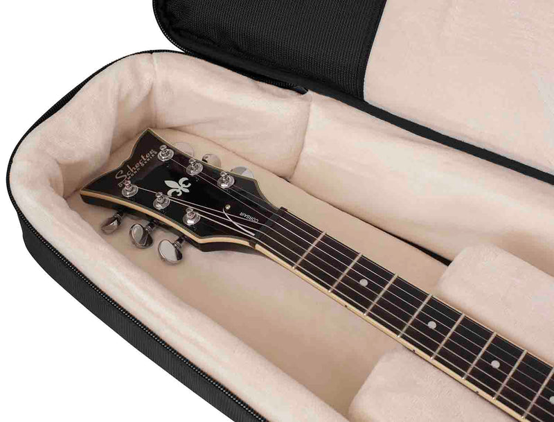 The Pro-Go Series G-PG-335V Gig Bag by Gator Cases fits Gibson and Epiphone 335® or Flying V® guitars. The interior includes ultra-thick padded sidewalls with micro-fleece lining, padded body block and adjustable neck cradle to provide extra protection. The external storage pocket with cable management keeps tuners, picks, strings, cables and accessories organized while your tablet and sheet music can be stored in the specialized pockets.