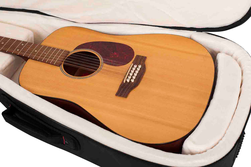 The Gator G-PG ACOUSTIC is Ultra-Thick Padded Sidewalls. Micro-Fleece Interior. Protective Rain Cover. Hideaway backpack straps. Body Block Internal Shock Absorber. Tablet pocket (20" x 17" x 2"). Internal cable management. Sheet music pocket.
