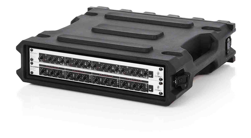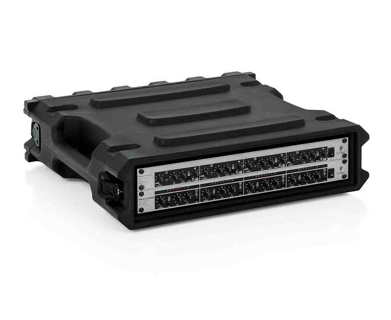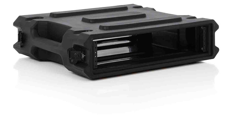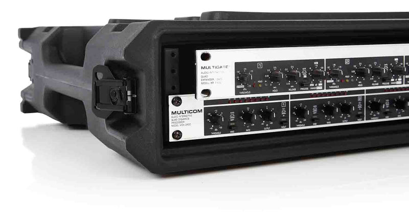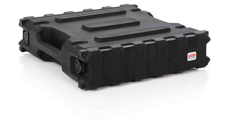 The Gator Case G-PRO-2U-19 is Virtually Indestructible Roto Molded Polyethylene Design. 19" Rackable Depth. Full Sized Front and Rear Lids. Molded-in ergonomic side carry handles. Recessed steel twist latches. Made from recycled materials. Includes threaded front and rear rack rails. New and Improved 2018 Models Available Soon.