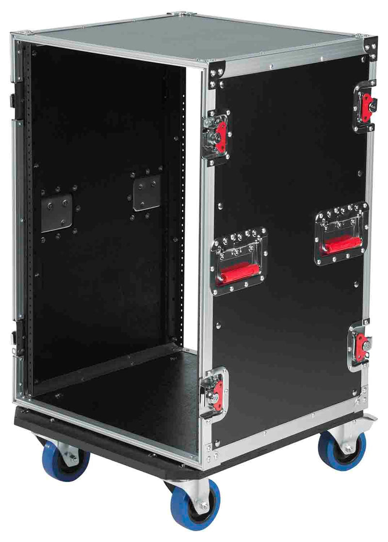 The Gator Case G-TOUR 16U CAST is a 9mm Plywood Construction with Laminated Exterior. Red Recessed Twist Latches and Spring-Loaded Rubber-Gripped Handles. Heavy-Duty Commercial Grade Plated Hardware and Reinforced Ball Corners. 3.2mm Thick Front and Rear Rack Rails. Tongue and Groove Extrusion Aluminum Valance. 4 Fixed, Heavy-Duty 4" Casters, 2 of Which are Locking.