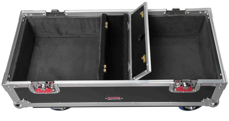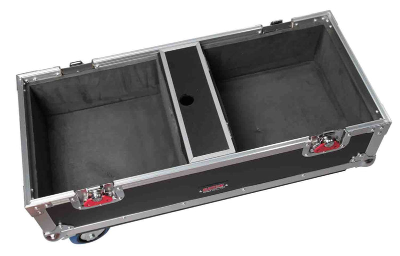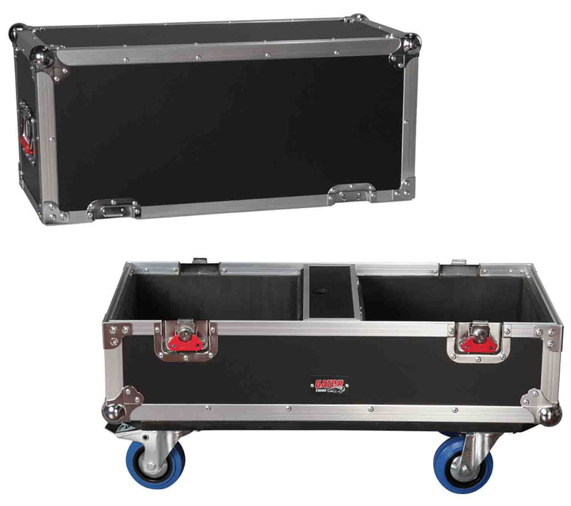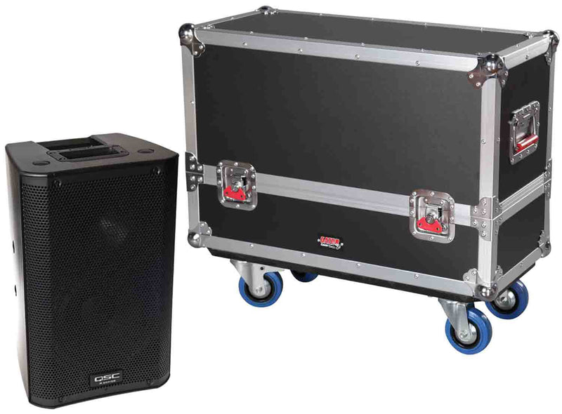 The Gator Case G-TOUR SPKR-2K8 is a G-Tour Style Case Designed to Fit (2) QSC K8 Loudspeakers. Rugged Plywood Construction with Laminated Exterior and Aluminum Valance. PE Internal Padding and EVA Foam Divider Keeps Speakers Secure During Transport. Built in Accessory Storage Compartment Inside Divider. Red Recessed Twist Latches and Spring-Loaded Rubber-Gripped Handles. (4) 3î Casters (2 Locking). Two internal compartments to hold each speaker. Interior dimensions list individual compartment for (1) speaker.