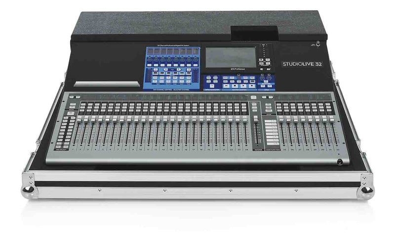The Gator Cases G-TOURPRESL32III tour-style case is designed to fit the Presonus 32 Channel StudioLive III Mixing Console. This flight case features plywood construction covered in black laminate. Aluminum edging ensures sturdy alignment when latching. The interior is lined with carpet and EVA foam to keep the console secure and allow air-flow. The G-TOURPRESL32III combines protection and performance with a breakaway lid allowing the console to remain in the case during use.