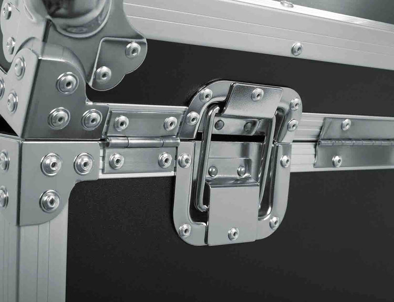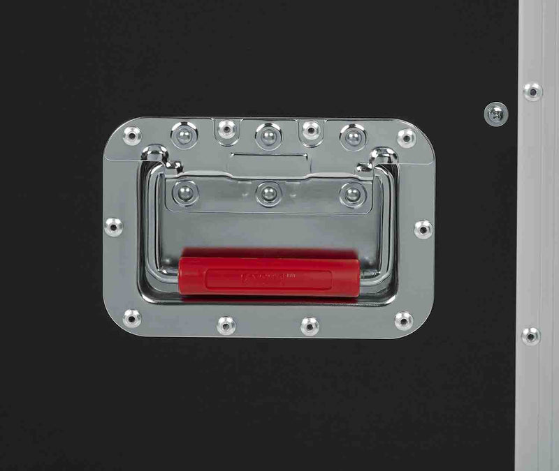 The Gator Case G-TOURTRK3030HS Wood Flight Truck Pack Trunk Case in black. Truck pack friendly, tour grade trunk with hinged lid. 9mm Plywood Construction with Laminated Exterior. Textile lined grey carpet interior to prevent damage to equipment. Heavy-Duty Commercial Grade Plated Hardware and Reinforced Ball Corners. Red recessed twist latches. Recessed dishes on top of case allow stacking. Includes four (4) Penn casters total, two (2) locking.