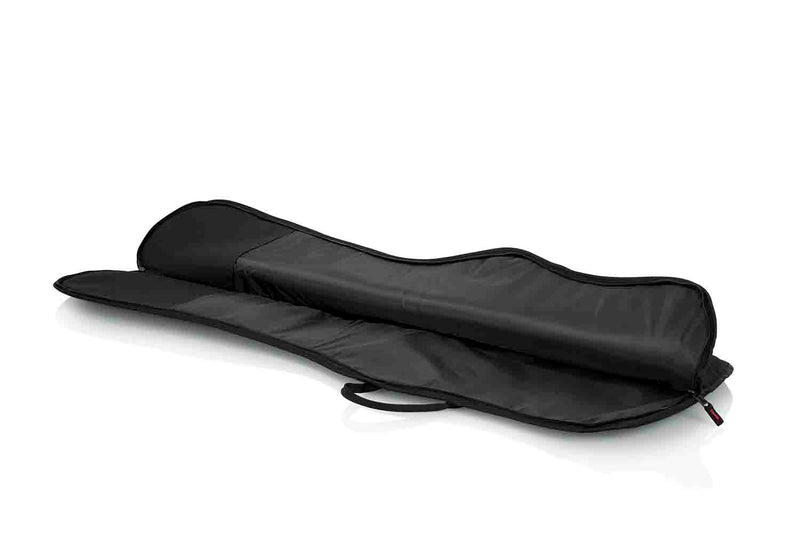The Gator GBE-BASS Gig Bag for Bass Guitars offers the rudimentary protection of a softshell bag as well as the heavy-duty durability of a Gator case. The rugged nylon exterior is resistant to rips, tears, and moisture while a top-to-bottom heavy-duty side zipper enclosure allows for easy loading and unloading. Inside, 10 mm of foam core padding provides extra protection. A single exterior zipper pocket provides ample space for your favorite bass guitar strings, picks, and accessories. Keep your bass guitar safe with the Gator GBE-BASS Lightweight Gig Bag.
