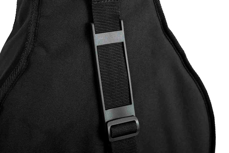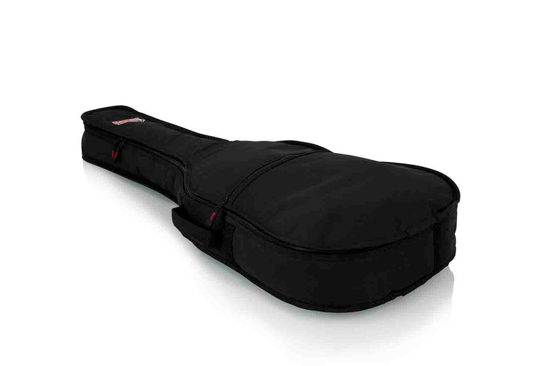 The Gator GBE-MINI-ACOU Gig Bag for Mini Acoustic Guitars offers the rudimentary protection of a softshell bag as well as the heavy-duty durability of a Gator case. The rugged nylon exterior is resistant to rips, tears, and moisture while a top-to-bottom heavy-duty side zipper enclosure allows for easy loading and unloading. Inside, 10 mm of foam core padding provides extra protection. A single exterior zipper pocket provides ample space for your favorite guitar strings, picks, and accessories. Keep your mini acoustic guitar safe with the Gator GBE-MINI-ACOU Lightweight Gig Bag.
