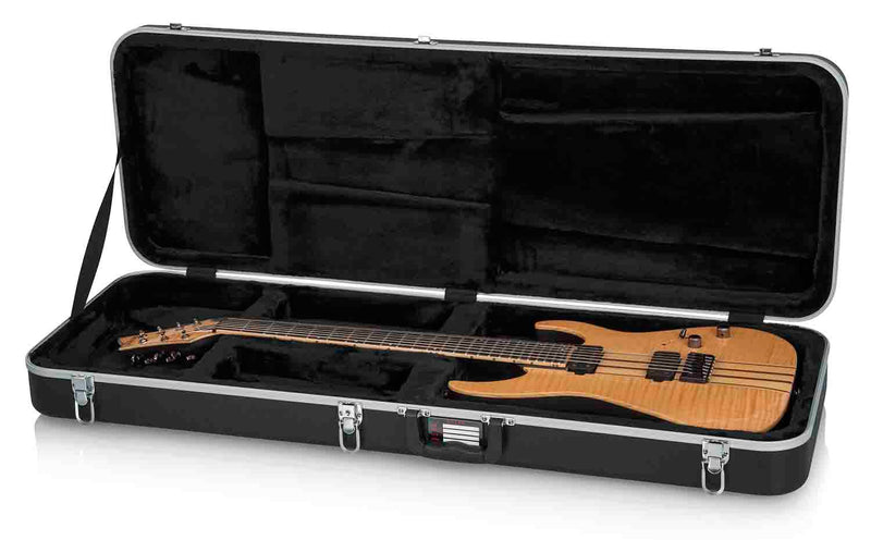 The Gator GC-ELEC-XL deluxe case is an extra-long deluxe hardshell case for electric guitars. A durable outer shell made from impact-resistant ABS plastic forms a protective barrier between your guitar and any hazard that stands in its way. Reinforced handles, heavy-duty aluminum valances and chrome plated lockable latches provide unparalleled security, whether you’re on the road or at home. The case’s interior is outfitted with EPS foam core covered in plush fabric lining, which provides protection and pampering all wrapped into one. An extra-long guitar deserves an extra-long lasting case. Enter the GC-ELEC-XL.