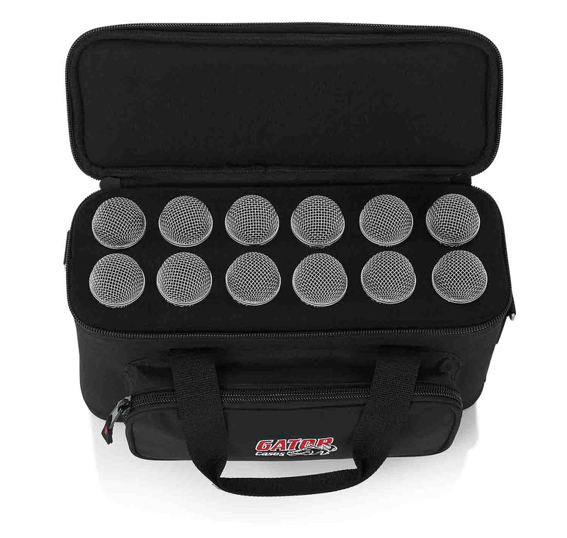 The Gator Case GM-12B Padded Hand-Held Microphone Bag from Gator Cases offers the very best in multiple mic storage and transport solutions. Durable 600-denier construction provides the strength and reliability synonymous with Gator Cases. Every member of the band gets heard when you bring up to 12 unidirectional, omnidirectional, bidirectional or cardioid hand-held mics to the show. Coil up your cables and stow them neatly inside the roomy exterior storage pocket. Grab hold of the padded, adjustable shoulder strap and you’re comfortably and easily on your way. For storage and toting your unique variety of microphones trust the GM-12B Padded Hand-Held Microphone Bag from Gator Cases.