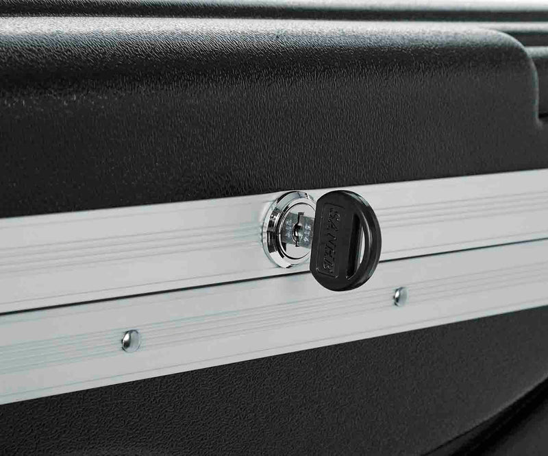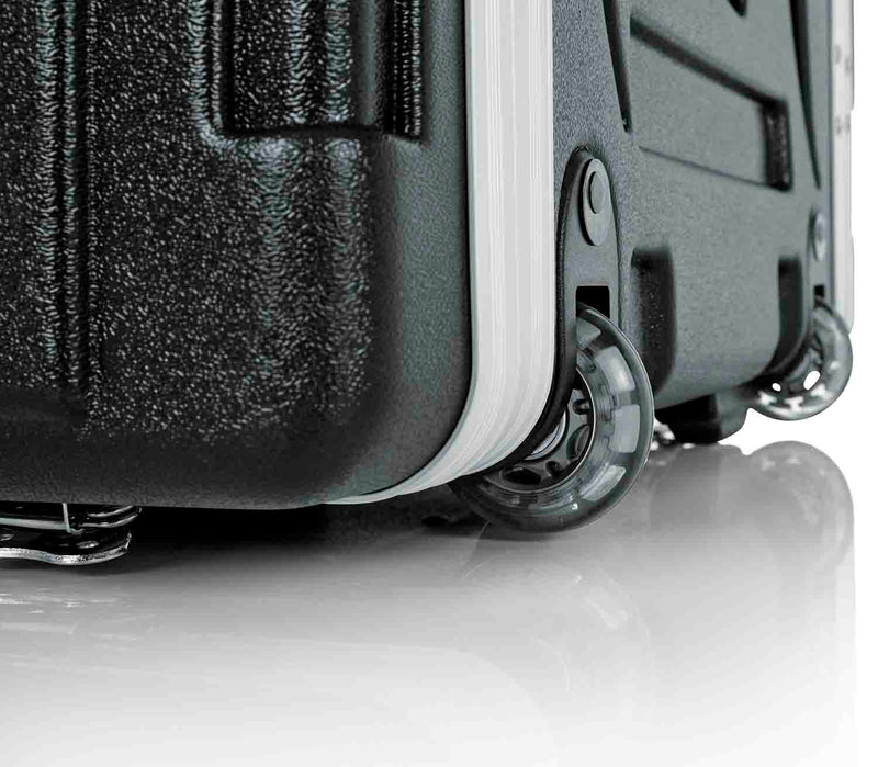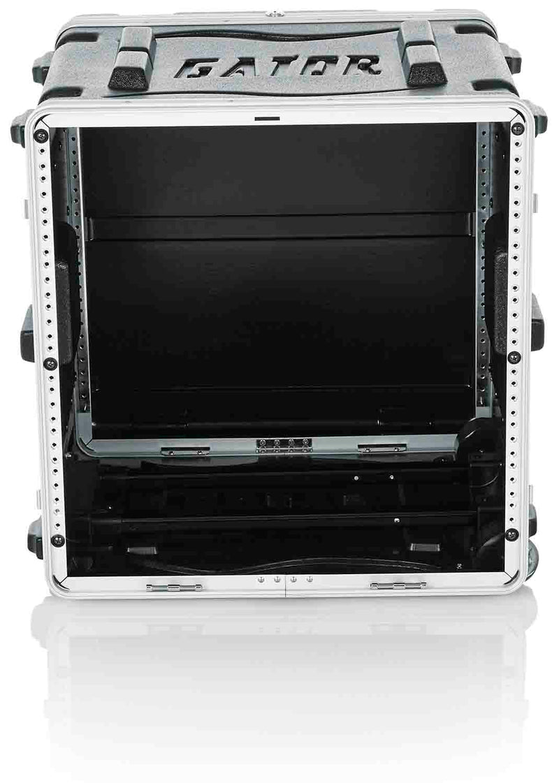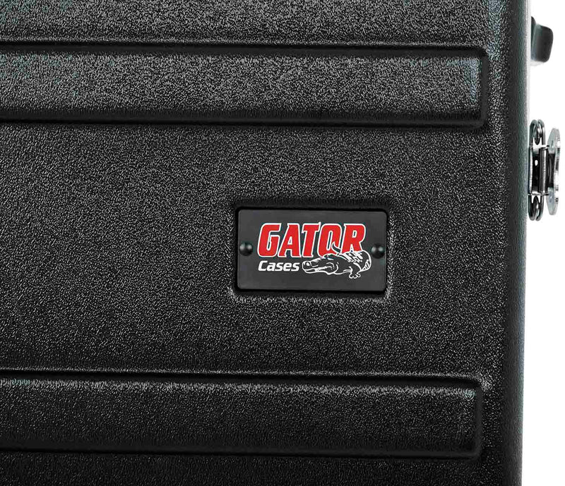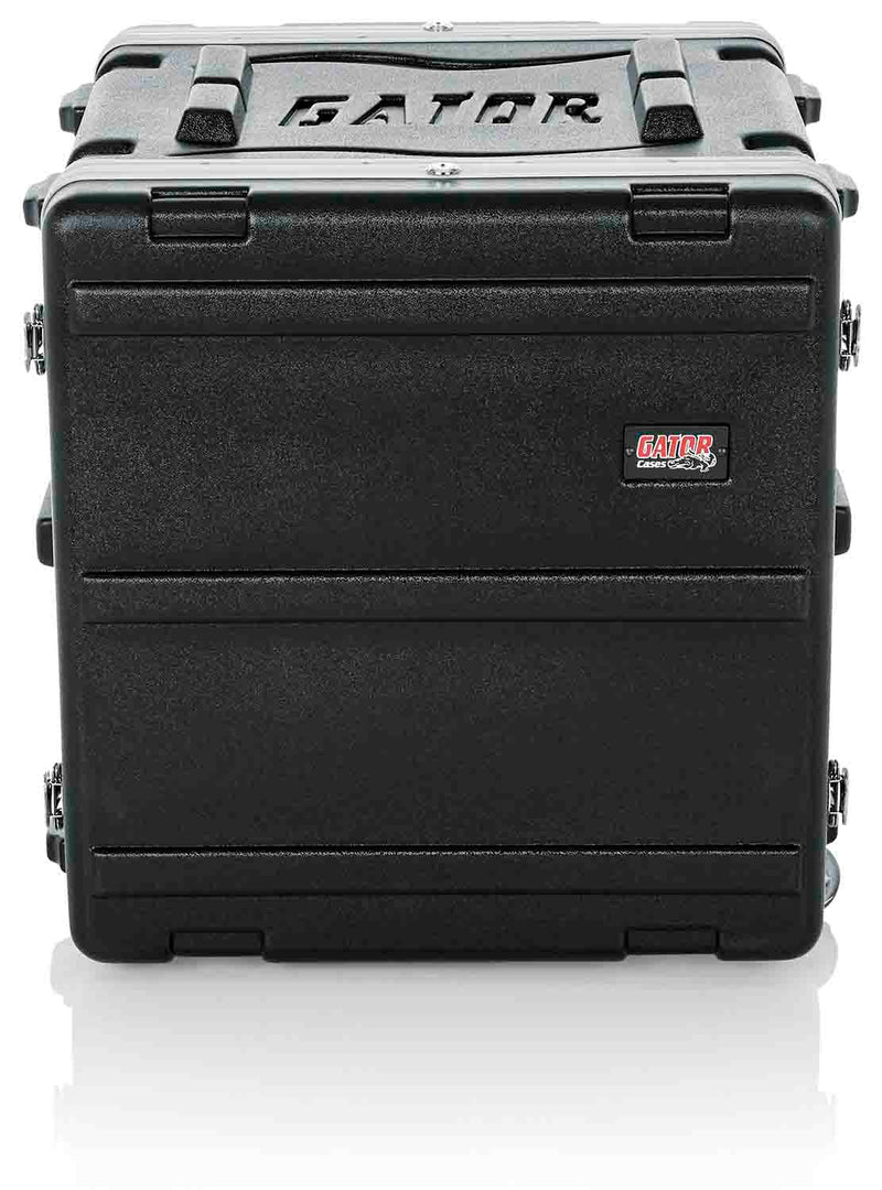 The Gator Case GRR-10L is Lightweight Polyethylene Construction. Threaded, Field Replaceable 7mm Zinc-Plated Steel Rack Rails. Front and Rear Rack Rails. Heavy-Duty Twist Latches. Comfortable recessed side handles. Rugged pull-out handle. Roller blade-style wheels. Locking lids.