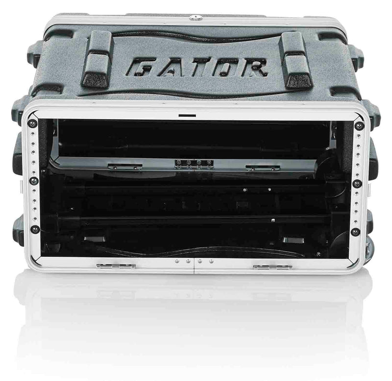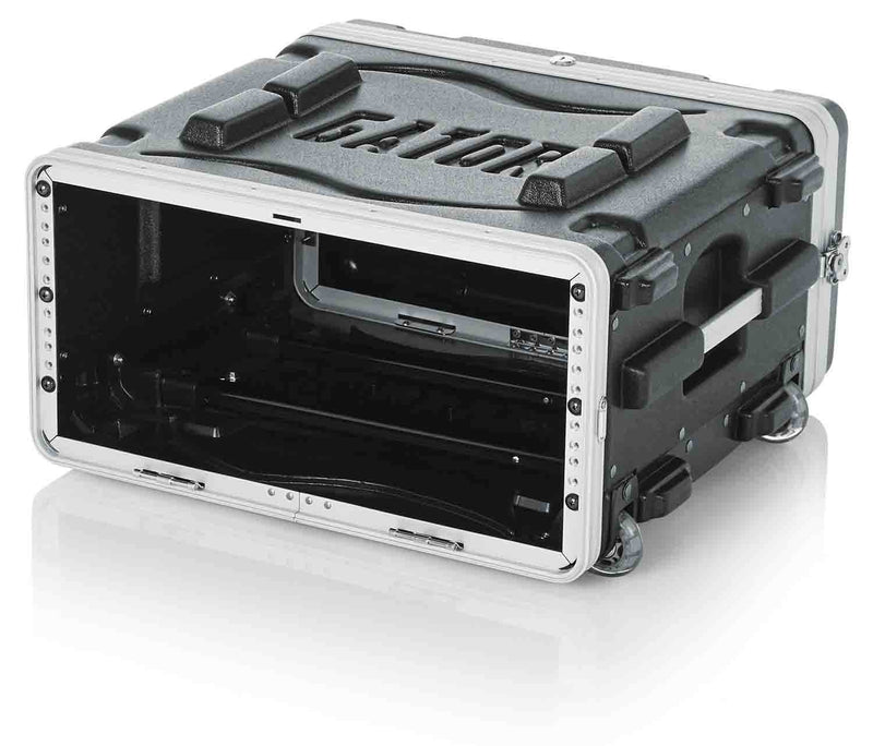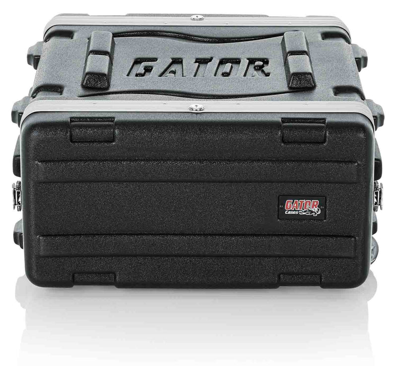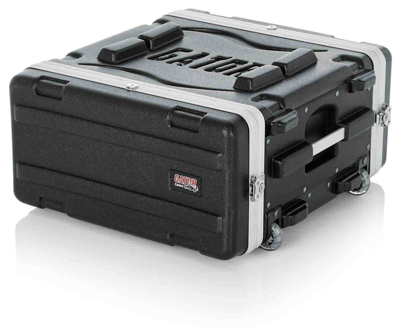 The Gator Case GRR-4L is Lightweight Polyethylene Construction. Threaded, Field Replaceable 7mm Zinc-Plated Steel Rack Rails. Front and Rear Rack Rails. Heavy-Duty Twist Latches. Comfortable recessed side handles. Rugged pull-out handle. Roller blade-style wheels. Locking lids.