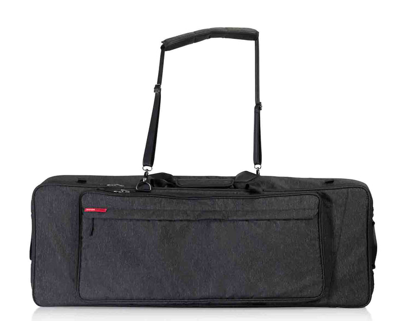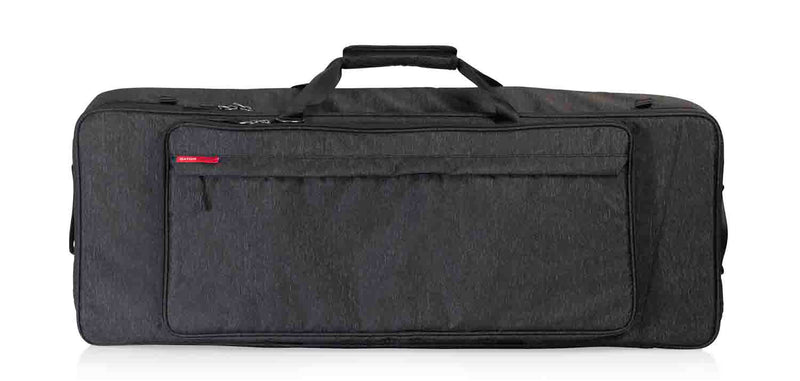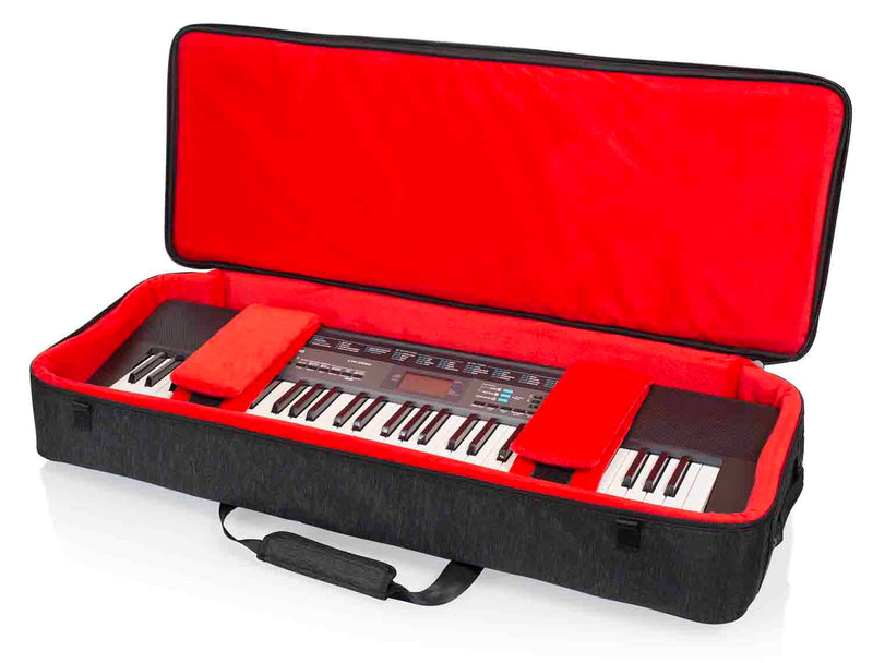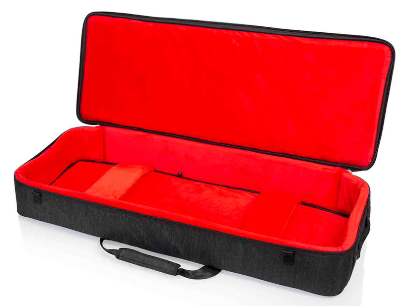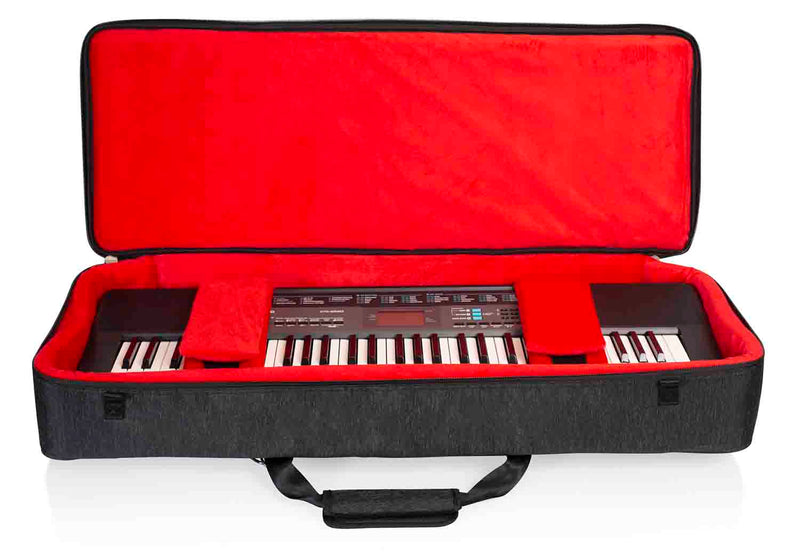 The Gator Case GTK61SL-BLK is a Transit Series Protective Gig Bag for 61-Note Slim Keyboards. Weather-Resistant Polyester Fabric Exterior in Black. Soft Micro Fleece Interior Lining with Thick Foam Padding for Case-Like Protection. Adjustable Hook-and-Loop Secure Straps to Hold Keyboard in Place During Transport.