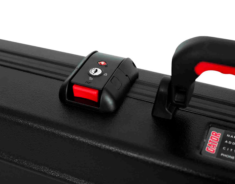 The Gator Case GTSA-GTRELEC is designed to fit Standard Electric Guitars Including Fender Strat/Tele Style. ATA Molded Military Grade Polyethylene Outer-Shell. TSA Approved Locking Center Latch Ideal for Air Travel. Universal Fit EPS Protective Foam Interior Nest. Thick Black Plush Interior. Extended Reach Protective Neck Cradle. Ergo-grip Injection Molded Handle. Surface Mounted Impact Diversion Latch Housing and Red Release Trigger. Black Powder Coated Hardware and Continuous Valance.